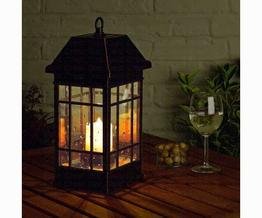 - Pillar candle inside lantern contains 1 amber LED for a warm glowing effect